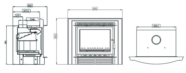 Material: aço carbono,porta e moldura em ferro fundido, vidro cerâmico (marca NEG ou Schott), tinta resistente a altas temperaturas (marca Forest)